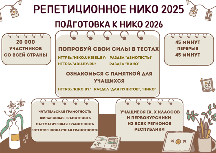 В ноябре-декабре 2025 года в нашей стране планируется проведение репетиционного этапа национального исследования качества образования (НИКО). Основной этап исследования будет проводиться в первом полугодии 2026/2027 учебного года.